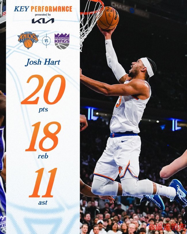 阿努诺比高效砍下33分,哈特贡献三双,尼克斯大胜国王取得3连胜稳居西部第三。