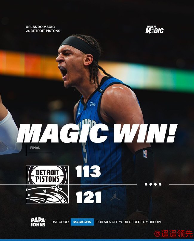 班凯罗砍下32分9篮板7助攻,大发彩票网站小瓦格纳32分4篮板7助攻,魔术力克活塞终结5连败,排名东部第七。